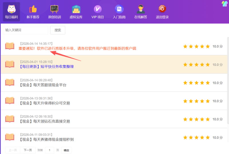 登录老版软件就有弹窗通知,在每日福利栏目第一个也有提示: