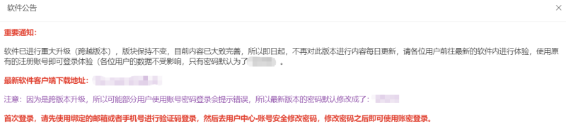 软件已进行重大升级(跨越版本),版块保持不变,目前内容已大致完善,所以即日起,不再对旧版本进行内容每日更新,请各位用户前往最新的软件内进行体验,使用原有的注册账号即可登录体验(各位用户的数据不受影响)。