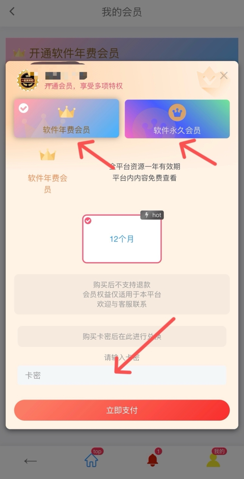 3.软件只支持年卡和永久卡,不支持月付。不要抱怨自己手头紧,软件钱很快就赚回来了,早买早赚;
